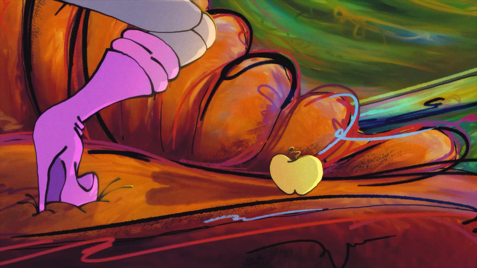 sparks a series of questions about herself and the nature of the apple, as by using it to